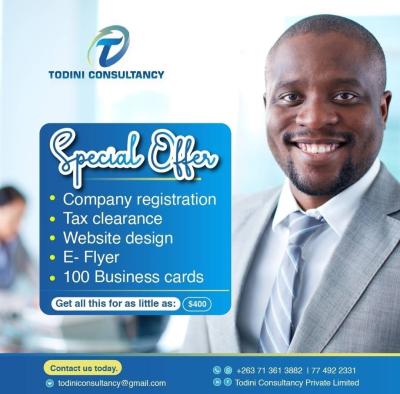 Package : Company registration, tax clearance, website design, E-flyer and 100 business cards.